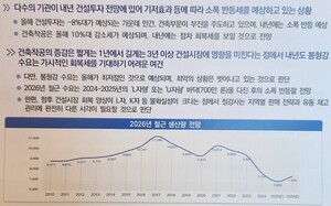 내년 철 스크랩 수요가 올해 수준이거나 소폭 증가할 것으로 전망된다.12일 서부산 신라스테이에서 열린 ‘철자원 상생포럼’에서 대한건설정책연구원 박선구 실장은 “건설 경기의 빠른 회복은 기대하기 어렵다”며 “L자(장기불황) 혹은 나이키 혹은 K자(양극화) 등 다양한 전망과 불확실성이 크지만 건설 경기의 빠른 회복을 기대하는 목소리는 적다”고 말했다.다만 이날 발표에서 “건축 착공의 증감은 짧게는 1년에서 길게는 3년 이상 건설시장에 영향을 미친다”고 강조하고 “내년에도 봉형강 수요는 가시적인 회복세를 기대하기 어렵다”고 말했다.그러면