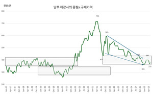 한국의 철 스크랩 가격이 장기 하락을 끝낸 것 같다.한국의 철 스크랩 가격은 2022년 4월 71만 5,000원(이하 남부 제강사 중량A 구매가격 기준)를 고점으로 하락에 하락을 거듭했다. 등락을 하면서도 바닥은 계속 하락했고, 고점도 계속 떨어졌다. 2년 여만에 처음으로 바닥의 상승 신호가 감지됐다.지난해 말 최저 가격은 36만 5,000원이었다. 다음 바닥은 5월 초의 37만 원으로 직전 바닥보다 5,000원 높다. 11개 분기만에 바닥이 오른 것이다. 5월 초 바닥 가격이 오른 것을 일시적인 현상으로도 볼 수 있지만 주변 여건