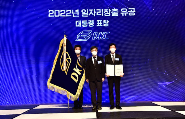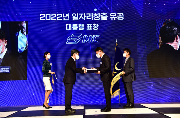 지난 12일 세종시 정부 세종 컨벤션센터에서 열린 고용노동부(장관 이정식)주관 「2022년 일자리 창출 유공 정부포상」에서 디케이씨가 대통령 표창을 받았다.