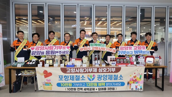 이날 진행된 교차 기부식에는 고향사랑기부제에 더 많은 직원들이 참여하도록 독려하고 광양·포항제철소가 지역사회와 상생하는 기업으로서 앞장설 것을 다짐한다는 의미가 담겨있다.