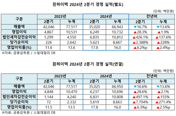 - 윈하이텍, 상반기 연결 영업이익률 13.5% 기록