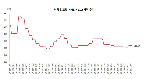 미국 동부해안 철 스크랩 평균가격인 컴포짓 가격(HMS No.1)이 톤당 316.67 달러로 지난주에 이어 보합세를 기록했다. 저작권자 © 스틸데일리 무단전재 및 재배포 금지 곽단야 기자 ykd230614@steelnsteel.co.kr 기자의 다른기사 관련기사 日 3지구 평균 철 스크랩價, 전주比 100엔 상승 10월 철 스크랩 수출, 올해 평균 수출량 웃돌아 [11-4 철 스크랩] 제품 시장 부진, 가격 하락 압력 지속 개의 댓글 회원로그인 댓글 내용입력 댓글 정렬 BEST댓글 BEST 댓글 답글과 추천수를 합산하여 자동으로 노출됩니다. 닫기 더보기 댓글삭제 삭제한 댓글은 다시 복구할 수 없습니다. 그래도 삭제하시겠습니까? 비밀번호 닫기 댓글수정 댓글 수정은 작성 후 1분내에만 가능합니다. 본문 / 400 비밀번호 닫기 내 댓글 모음 닫기