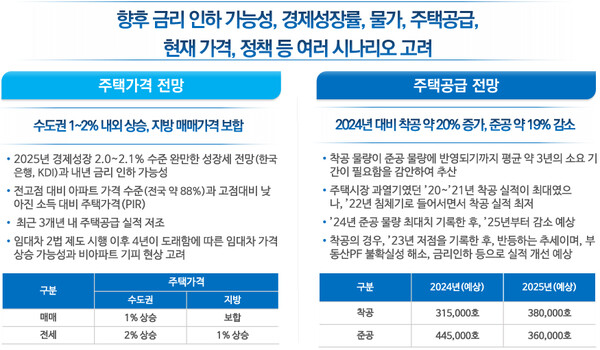 A. 단기적으로 보면, 2025년 이후 건설경기가 회복될 가능성이 있지만, 과거처럼 급격한 반등(V자 반등)은 어렵고, 나이키형(완만한 상승) 회복이 예상된다.