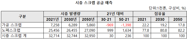 공급의 전망은 노폐 스크랩과 가공 스크랩으로 나누어 전망했다.