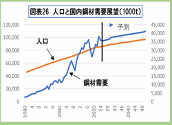 2030년과 2050년의 전망: 인구 증가를 바탕으로 추정한 수요는 2024년 3,600만 톤을 기반으로 재 추정하면 2030년 3,750만 톤, 조강 생산은 4,000만 톤정도, 2050년은 각각 4,100만 톤과 조강 4,500만 톤으로 예상된다. 인구는 2024년 8,552만 명은 2030년 8,916만 명(UN), 2050년 9,714만 명으로 점차 증가해 2058년 9,796만 명으로 정점을 도달할 것으로 전망된다.