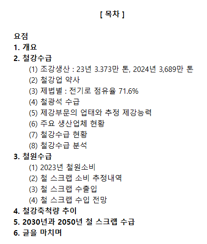 2) 장기 철원 수급대책; 2050년에는 순환자원인 철 스크랩(발생 잠재력)을 100% 사용하더라도 수요의 45%밖에 충당할 수 없다. 철원의 자급화가 목표라면 새로운 철원인 DRI투자를 진행해야 한다. 저품위 철광석을 녹일 수 있는 설비도 있고, 흑해쪽에서는 천연가스도 발견됐다.