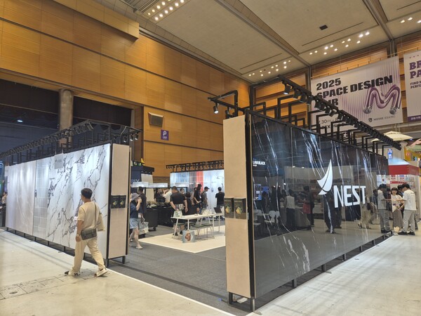 대형 마감재 부스의 위용도 인상적이었다. IL SOLE은 백라이트 조명으로 대리석 무늬의 깊이를 살린 패널을 전면에 배치해 발길을 붙들었고, NEST 부스는 블랙 하이글로시 세라믹 대형 타일로 럭셔리한 분위기를 자아냈다. PHOMI는 에코 점토 소재의 독특한 질감을 강조하며 친환경 고급 마감재로 주목받았다.