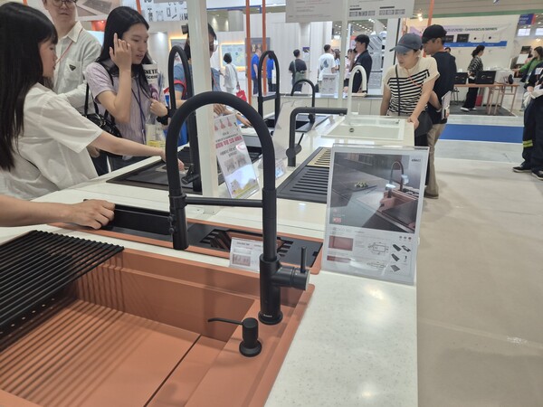 주방·욕실 전시관에서는 LIVART, BEKJO, 자인, 한샘 등이 싱크와 수전, 욕실, 가구를 전시해 관람객의 손길이 끊이지 않았다. 단순한 모형이 아니라 실제 설치된 부스 안에서 제품을 확인하거나 비교하는 체험이 가능했다.