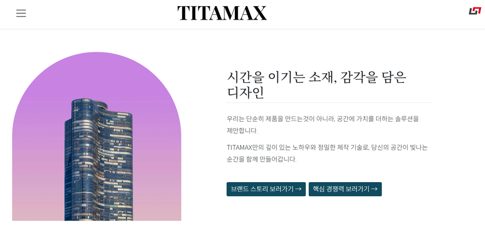 황금에스티가 프리미엄 스테인리스 건자재 브랜드 ‘티타맥스(TITAMAX)’ 전용 홈페이지를 새롭게 개설했다. 이번 홈페이지는 단순한 제품 안내를 넘어 스테인리스 소재의 내구성과 정교한 가공 기술, 감각적인 디자인을 결합한 브랜드 철학을 전달하며, ‘공간을 디자인하는 언어’로서의 가치를 강조하고 있다.