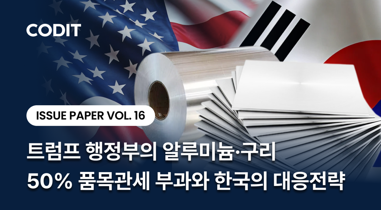 AI 법·규제·정책 플랫폼 기업 코딧 부설 글로벌정책실증연구원(원장 송해영)은 23일 '트럼프 행정부의 알루미늄·구리 50% 품목관세 부과와 한국의 대응 전략' 이슈페이퍼를 발간했다고 밝혔다. 이번 페이퍼는 한미 간 상호관세 협상 합의 논란이 이어지는 가운데, 품목관세가 국내 비철금속 산업에 미치는 영향과 주요국 대응 사례를 분석해 정책적 대응 방안을 제시했다.