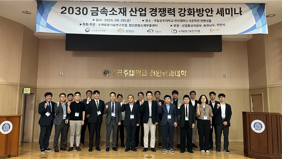 이번 세미나는 소재융합기술연구조합(이사장 변창현)이 주최하고 산업통상자원부, 충청남도, 천안시가 후원했다. 행사에는 정부, 지자체, 산업계, 학계, 연구기관 등 산·학·연·관 전문가 약 120여 명이 참석해 금속소재 산업의 경쟁력 제고를 위한 전략을 공유하고 논의를 이어갔다.